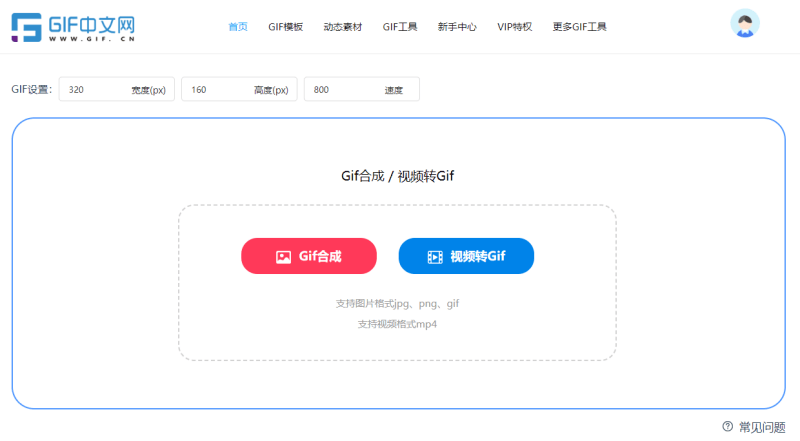 打开网站,在首页选择功能,点击【GIF合成】功能。